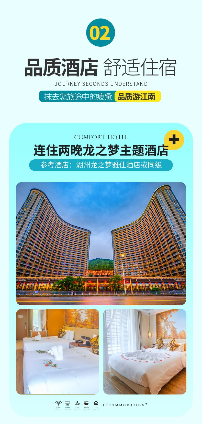 住宿:兩晚湖州龍之夢主題酒店(diàn),一晚濮院豪華客棧(硬件(jiàn)标準參照(zhào)當地(dì)五星标準修建,未挂牌);