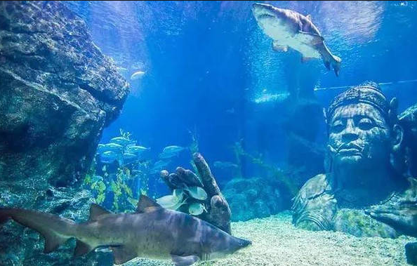 玻璃水(shuǐ)族箱,還可(kě)搭乘透明(míng)玻璃船(chuán)與潛水(shuǐ)服務,欣賞海(hǎi)底動物(wù)悠遊,館方也(yě)會(huì)定期安排企鵝、鲨魚喂食時間。館内生物(wù)涵