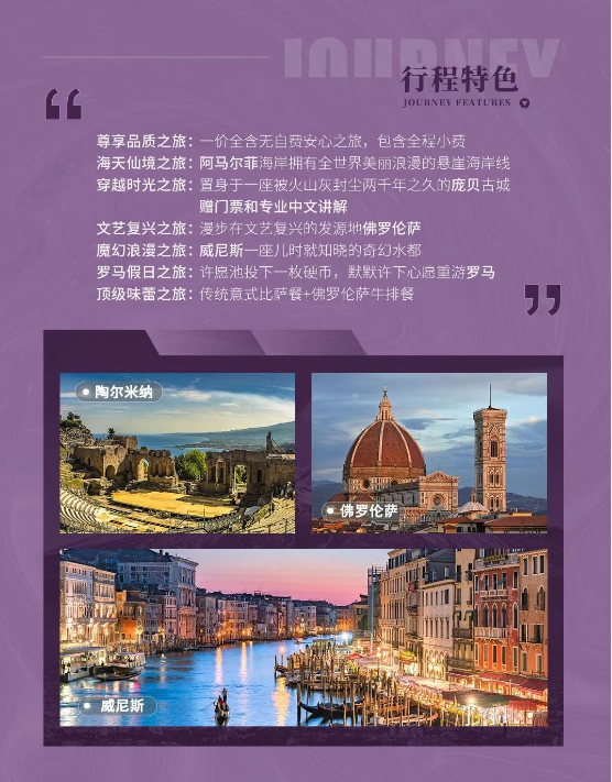 意大(dà)利深度體驗:米蘭、威尼斯、佛羅倫薩、羅馬、龐貝、巴勒莫、阿格裏真托、卡塔尼亞、陶爾