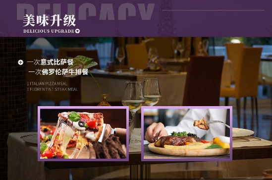 頂級味蕾之旅: 傳統意式比薩餐+ 佛羅倫薩牛排餐,讓味蕾的(de)刺激帶給您更多的(de)快樂(yuè)與幸福;