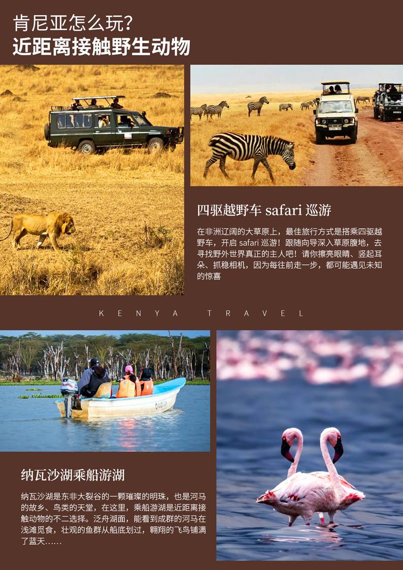 午餐後前往【長頸鹿公園】,近距離(lí)接觸長頸鹿,可(kě)以喂食物(wù)和(hé)親吻長頸鹿。公園建于1983年, 上(shàng)世紀70年代,一種叫Rothschild的(de)長頸鹿瀕臨滅絕,至1973年,在肯尼亞西(xī)部僅存130頭。爲拯救這一稀有(yǒu)物(wù)種,喬克夫婦采取了收養及放(fàng)歸自然的(de)方法。經過努力,目前Rothschild的(de)數量已達近500頭。1979年,喬克決定成立自然教育中心,通過遊客親自喂養長頸鹿的(de)方式,使遊客理(lǐ)解人(rén)與自然和(hé)睦相(xiàng)處及保護野生動物(wù)的(de)重要性。