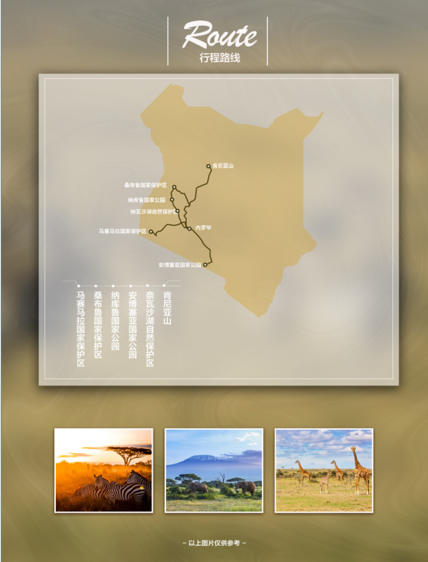 肯尼亞觀賞季,獵遊八大(dà)保護區,一次暢遊;全景行(xíng)程安排:安博塞利國家公園、桑布魯國家公園、納庫魯國家公