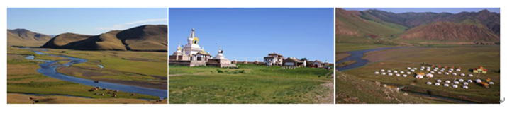 2、鄂爾渾河盆地(dì)風光(guāng),鄂爾渾河發源于蒙古國杭蓋山脈,全長1124公裏,是蒙古最長的(de)河流。鄂爾渾河從哈拉和(hé)林縣西(xī)側流過時變爲支流湧入盆地(dì),形成了在藍天白雲下河水(shuǐ)蜿蜒曲折、牛羊成群、蒙古包散落在草(cǎo)原上(shàng)的(de)絕佳景觀。
