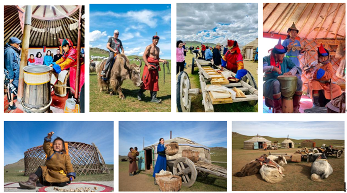 早餐後,乘車(chē)前往【遊牧蒙古展示區】距烏蘭巴托55公裏,展示區有(yǒu)專門的(de)演藝人(rén)員爲遊客展示制(zhì)作遊牧民(mín)最傳統的(de)飲食,品嘗奶酒奶食,邀請您一起遊戲,教您制(zhì)作氈子,觀看勒勒車(chē)遊牧、放(fàng)牧、騎馬、騎牦牛等生産生活展示,欣賞傳統的(de)民(mín)族歌舞,了解遊牧民(mín)族風俗習(xí)慣,可(kě)謂是草(cǎo)原遊牧民(mín)族生活、風俗的(de)精彩縮影!