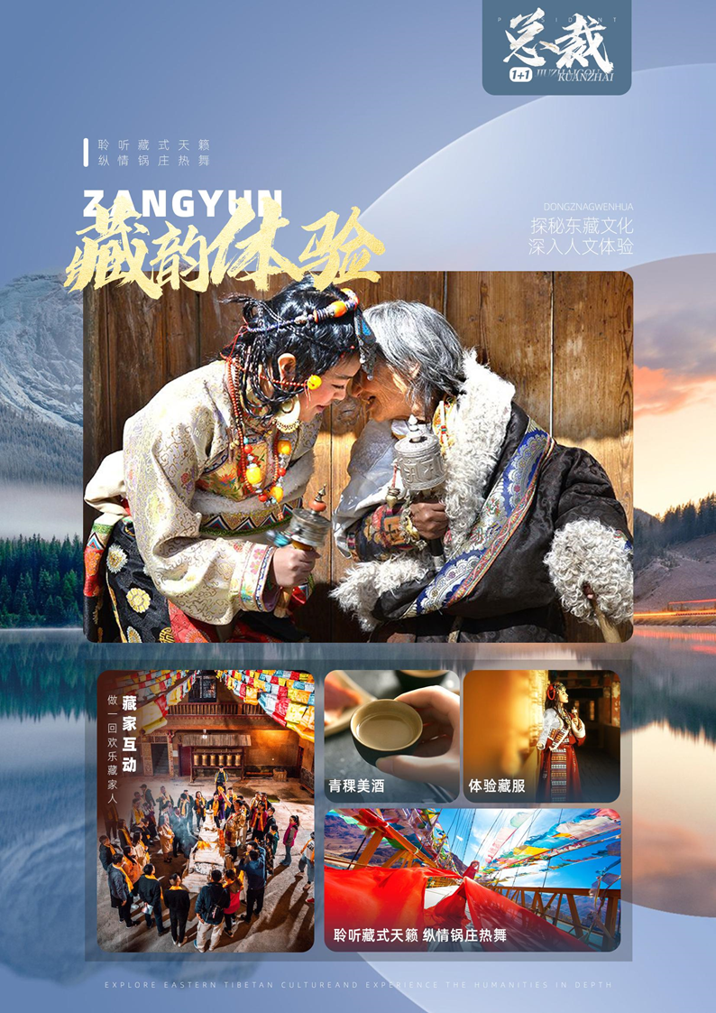 高(gāo)歌迎賓,禮獻哈達,聖水(shuǐ)祈福、轉經筒、跳鍋莊,感受藏家小(xiǎo)哥哥小(xiǎo)姐姐的(de)熱(rè)情與魅力