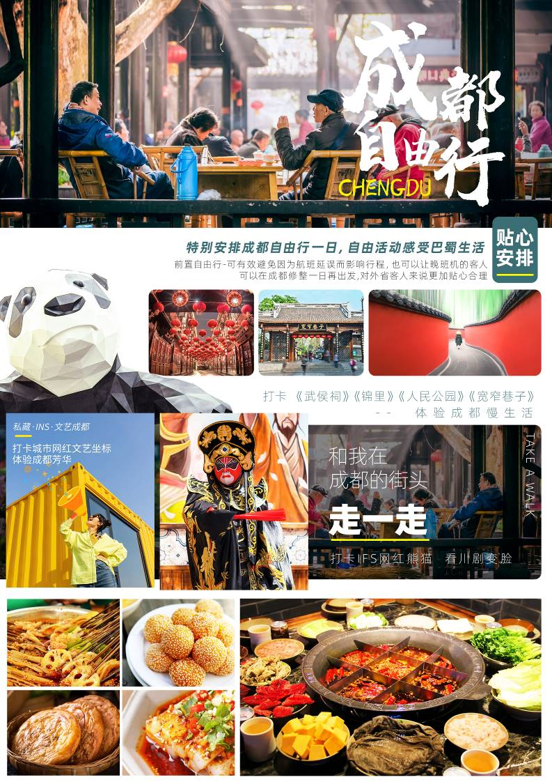 [貼心安排]特别安排成都(dōu)自由行(xíng)一日,自由活動感受巴蜀生活;